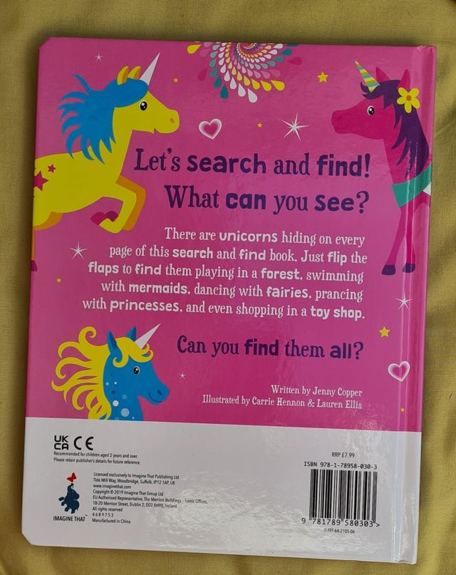 Search and find unicorns, mermaids, fairies, princesses and toys on every page.