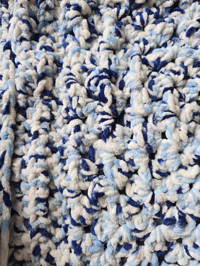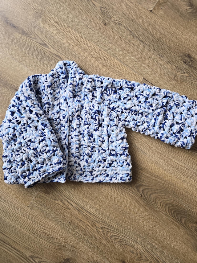 Crochet chenille granny square hexagon cardigan blue white mix