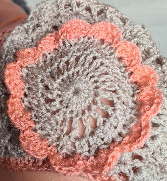 Crochet Peach White Striped Sparkly Zigzag Chevron Wave Cardigan 5-6 years