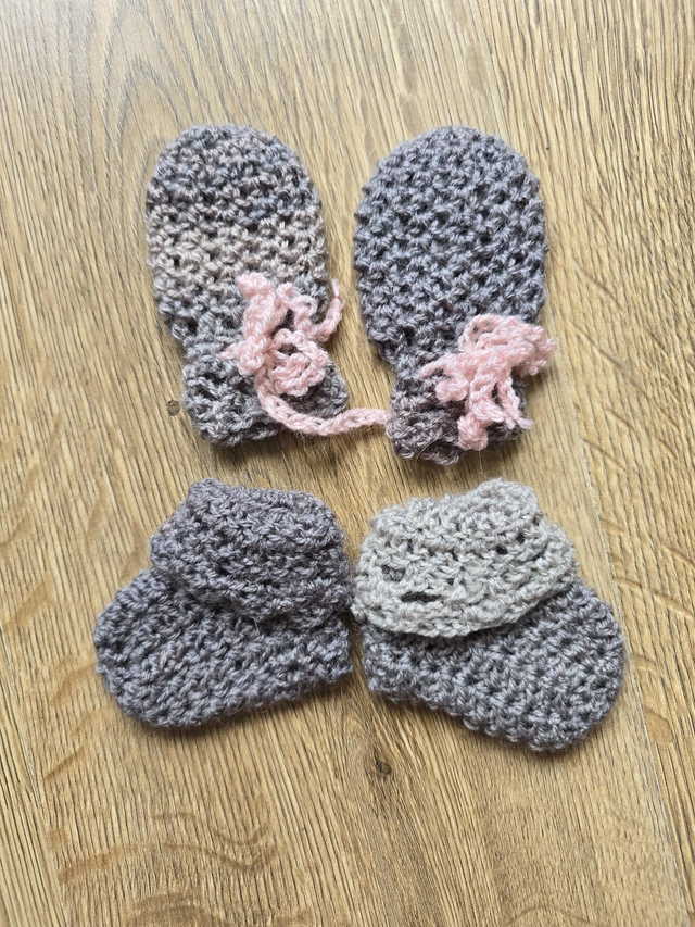 Crochet Romper, mittens, boots, sleeping bag/blanket Set 0-3/6 Months
