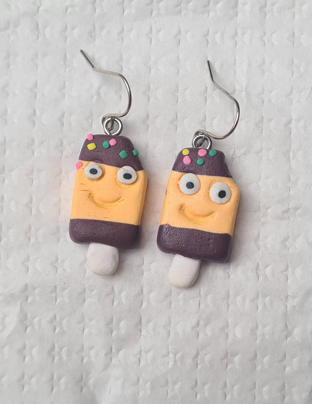 Earrings clay ice lolly lollipop brown orange sprinkles novelty