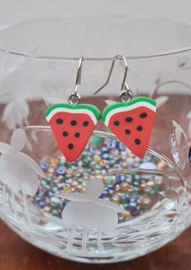 Earrings Clay Watermelon Slice Hooks
