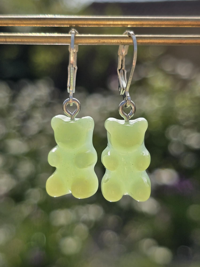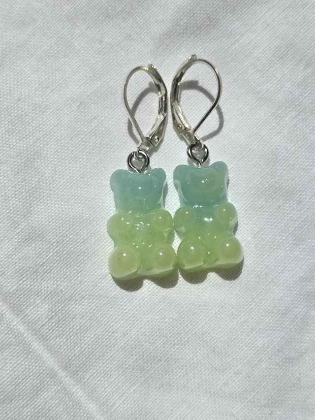 Earrings green blue/green resin opaque gummy bears