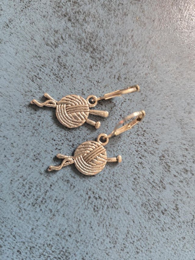 Earrings silver knitting needles and ball of yarn