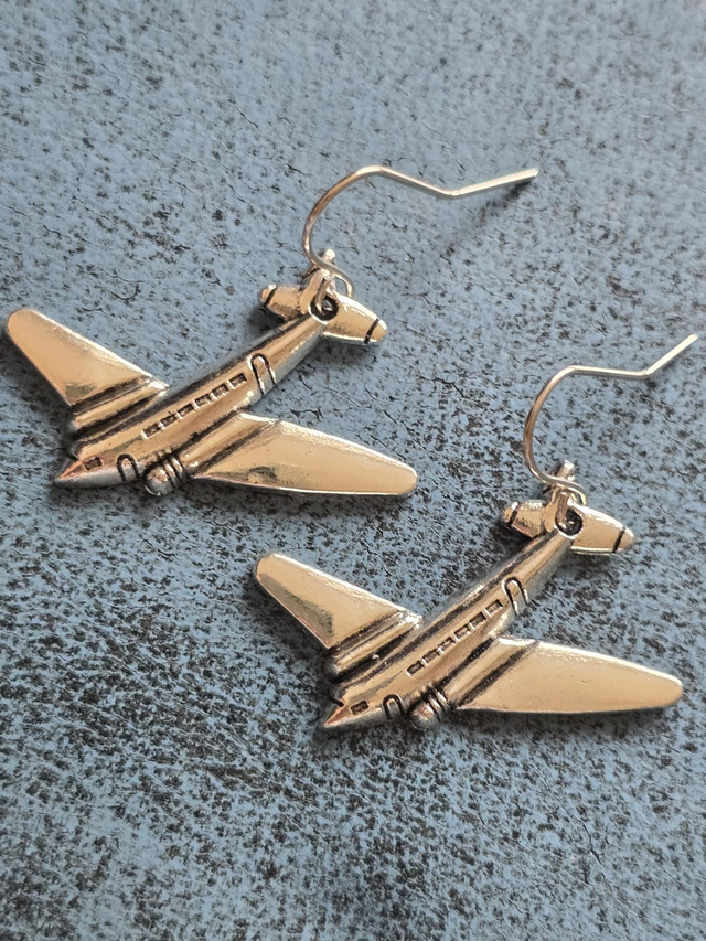 Earrings silver plane jet large