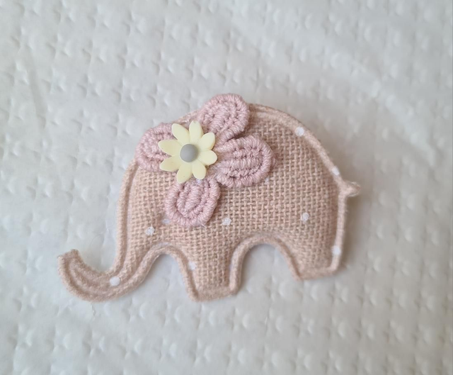 Embellishments applique elephant beige pink yellow flower