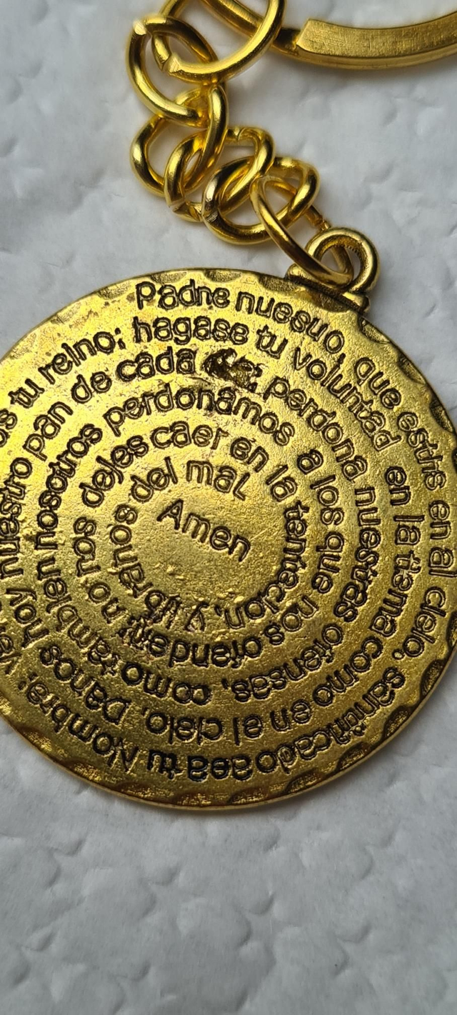 Keyring / bag charm gold disc The Lords Prayer Spanish version