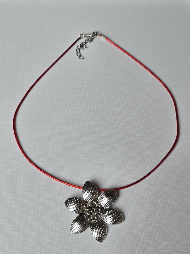 Necklace with a large silver flower pendant