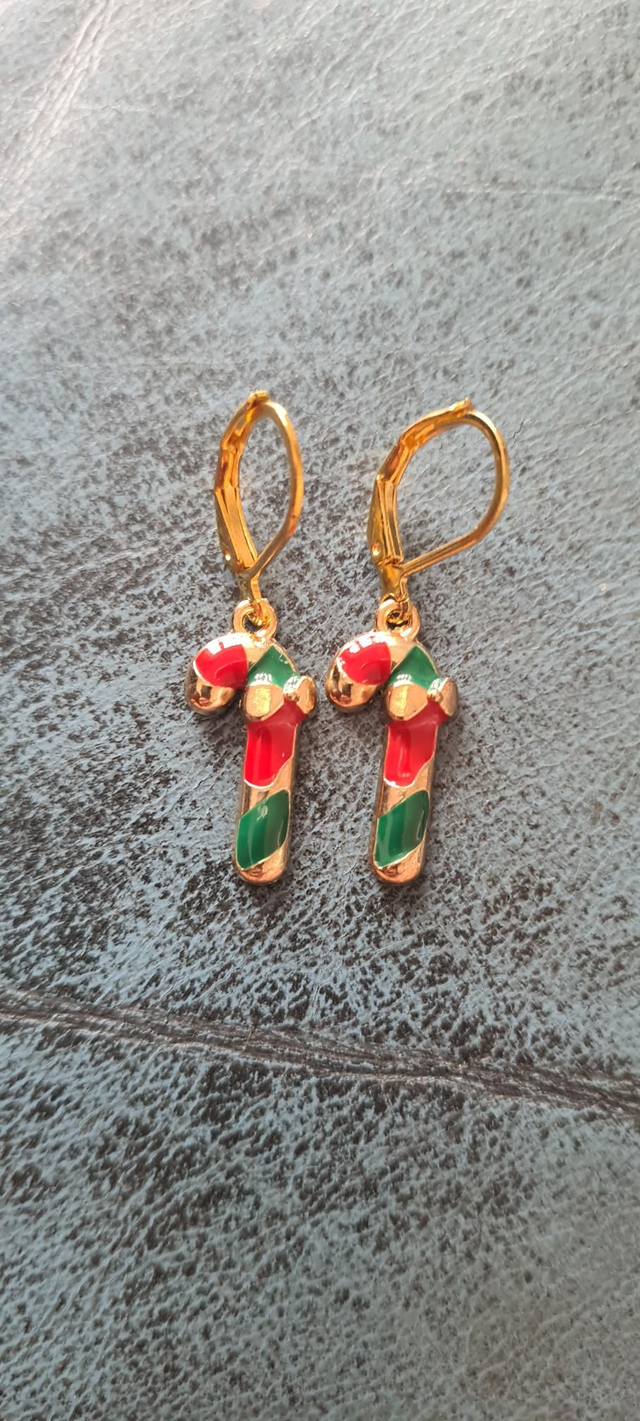 New Gold Enamel Red Green Christmas Candy Cane Earrings Lever Backs