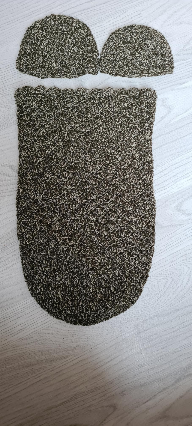 New Handmade Crochet Cocoon 2 Hats Baby Doll Teddy Brown Yellow Mix