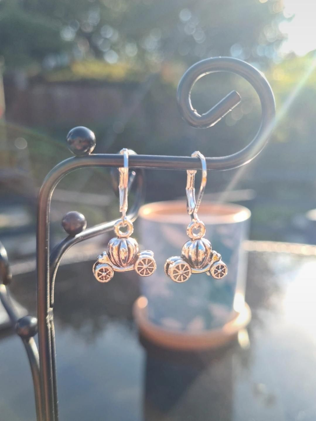 New Small Silver Pumpkin Princess Carriage Earrings Lever Backs