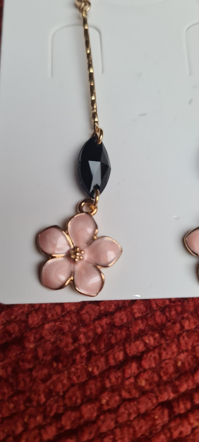 Pink enamelled 5 petal flower earrings