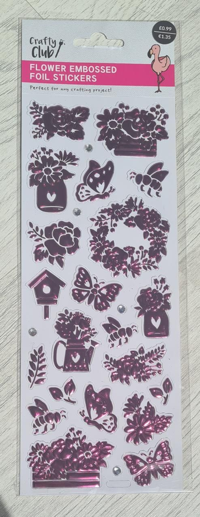 Stickers Flower Embossed Foil Pink Diamante