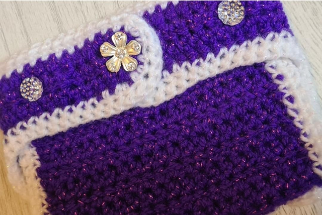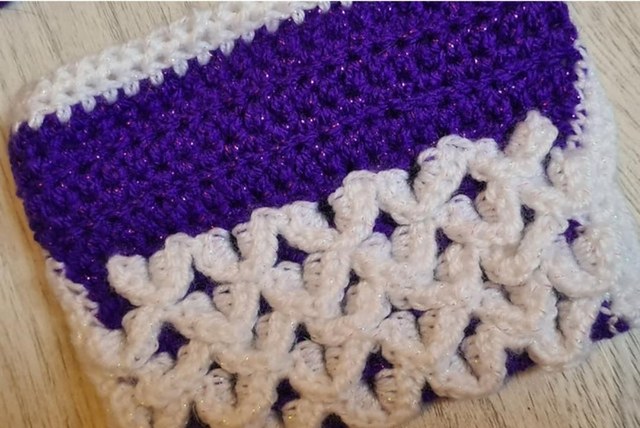 White and purple metallic yarn