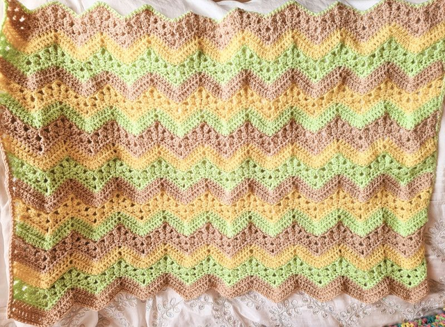 Unique handmade crochet baby blanket zigzag chevron mint yellow beige